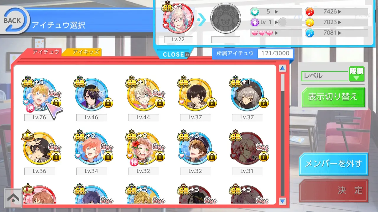 하단 메뉴 내 [アイチュウ] 버튼 클릭 시 진입
